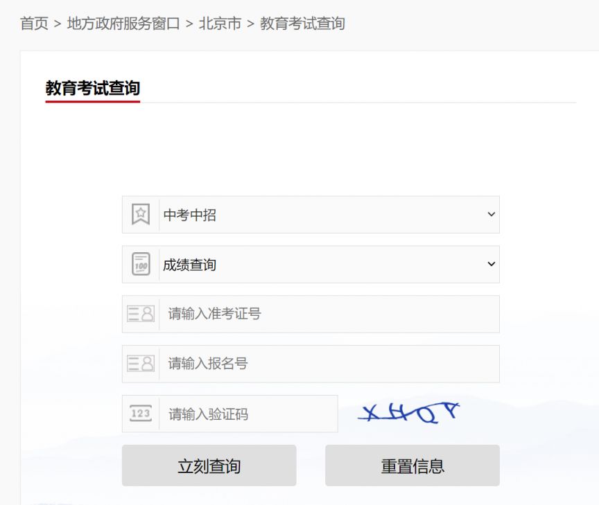 (注:为了更方便大家查询,北京市政务服务网7月9日将在首页“服务推荐”栏中放置中考成绩查询服务)第三步,进入“中考成绩查询”页面,输入准考证号和报名号,向右滑动完成验证,点击“立刻查询”即可显示中考成绩(如下图所示)。
