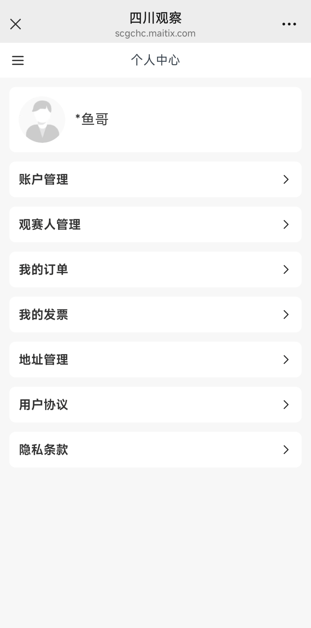 3.个人中心,在“观赛人管理”可提前添加观赛人信息,每张票均需对应一个实名身份。当前支持中华人民共和国居民身份证、护照、港澳居民来往内地通行证、台湾居民来往内地通行证、外国人永久居留身份证。