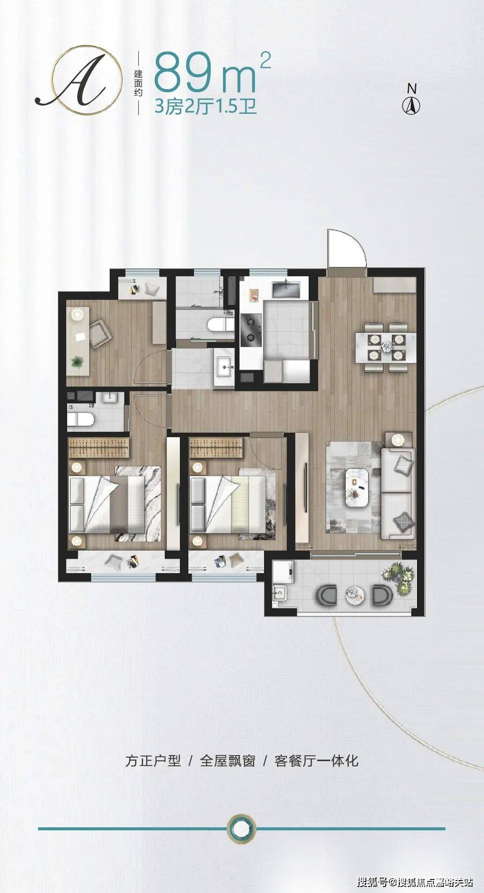 ,采光性能优异!全卧飘窗设计,延伸室内空间。客餐厅一体化设计,减少过道面积浪费,视野也更开阔。
