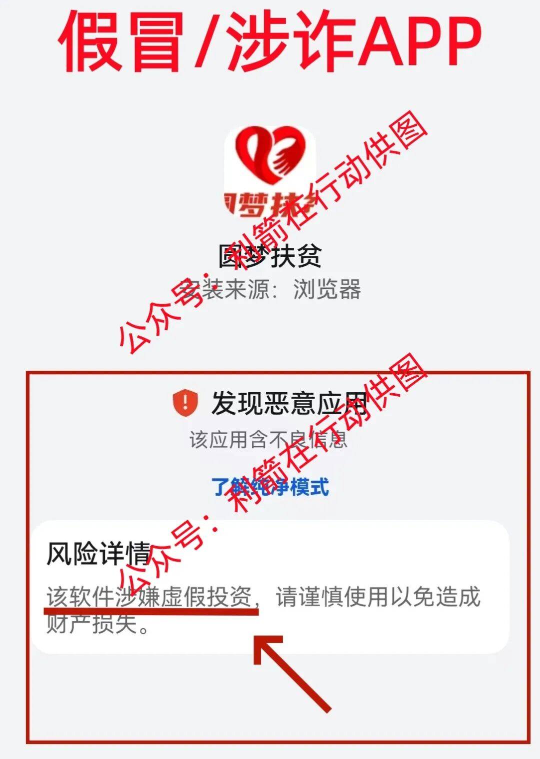 “发现恶意应用”,风险详情:该软件涉嫌虚假投资,清清楚楚、明明白白的说明了是病毒软件,是诈骗软件。