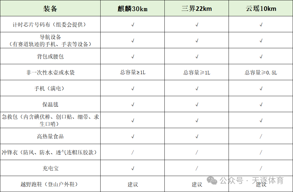 1、组委会将在中途严格进行强制装备检查,若发现参赛者没有按规定备齐强制装备,将会进行罚时处罚或取消参赛者的成绩,并拒绝其继续参赛。