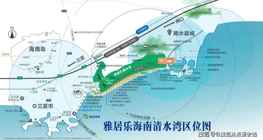 项目地处北纬18°,距三亚市区直线公里,尊踞大三亚醇熟生活圈;优踞陵水度假区中央核心,东拥清水湾万亩文旅醇熟配套,西享陵水黎安国际教育创新试验区,坐享1公里内新村镇醇熟生活圈,致力于打造清水湾片区产品品质标杆。