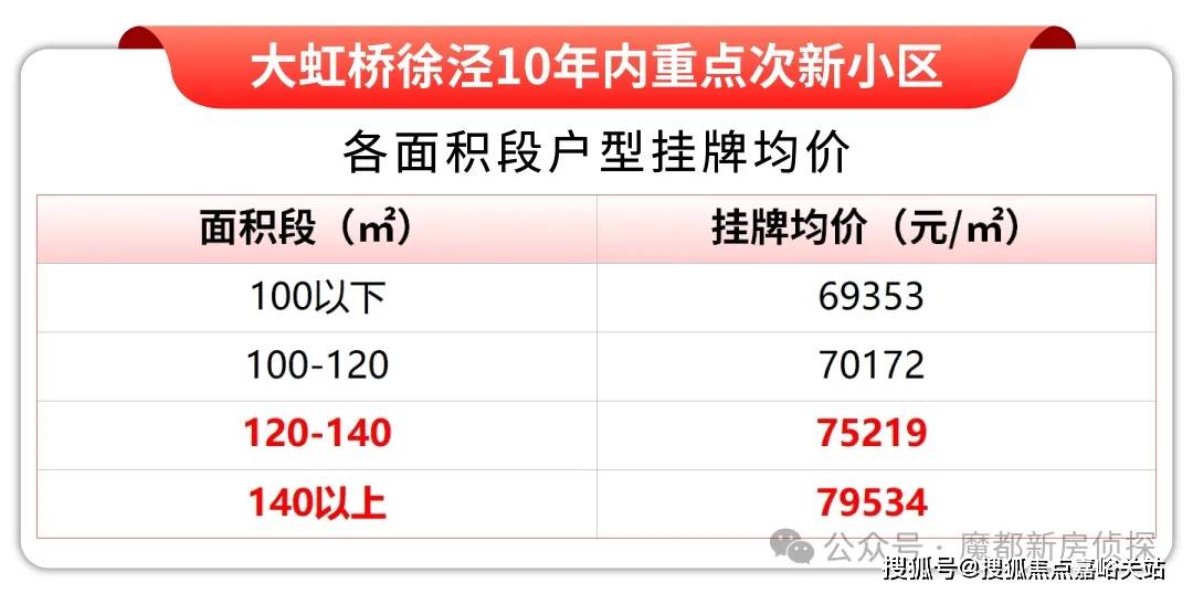 据链家网最新挂牌数据显示,目前徐泾10年内次新重点小区100㎡以下户型挂牌均价已经跌破7万/㎡。但140㎡以上的大户型却仍然有近8万/㎡的挂牌均价,溢价小户型近15%!
